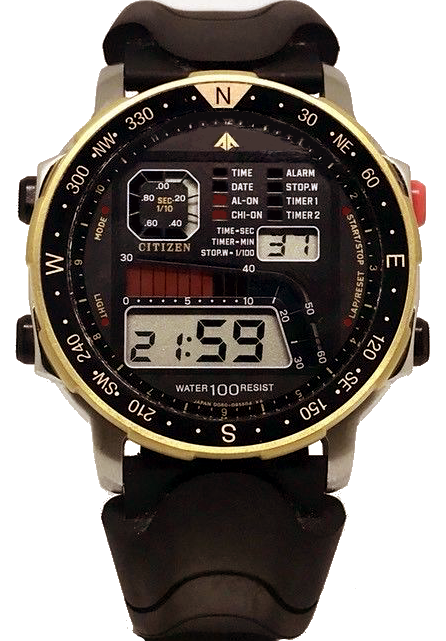 Years ago I used to collect watches that did something special or that looked really cool, my favorite watch “for the looks” has been the Citizen Promaster D060, a friend of mine was wearing the watch and that is the first time I saw it, what got my attention were the moving colored displays so I asked him if he could take it off and let me see it, so he did, I was impressed by the watch and also I loved the round display on the upper left corner that moved twice a second, and also the hour is displayed in smaller numbers tan the minutes which makes the watch look better to me.